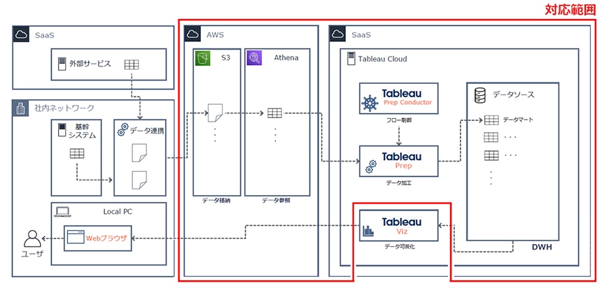 分析基盤の構築には、将来的なデータ拡張や機能追加を見据えた柔軟な設計が求められます。しかし、担当者は兼務体制で、社内エンジニアもいないため、十分な工数を確保できず、プロジェクトの進行に制約が生じていました。こうした状況を踏まえ、限られたリソースで効率的に構築を進める体制と、安心して活用できるサポート体制の整備が不可欠でした。