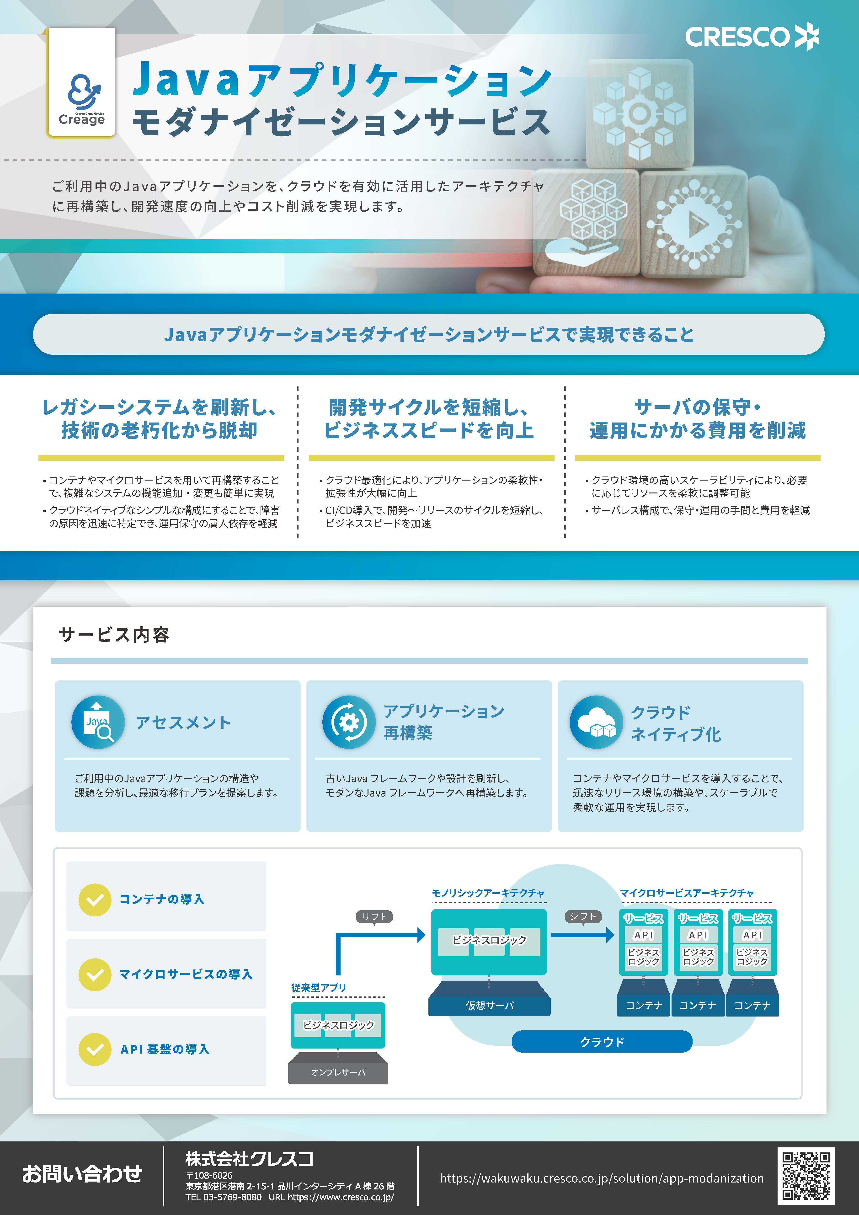 ご利用中のJavaアプリケーションをクラウドを有効に活用したアーキテクチャに再構築するサービスです。