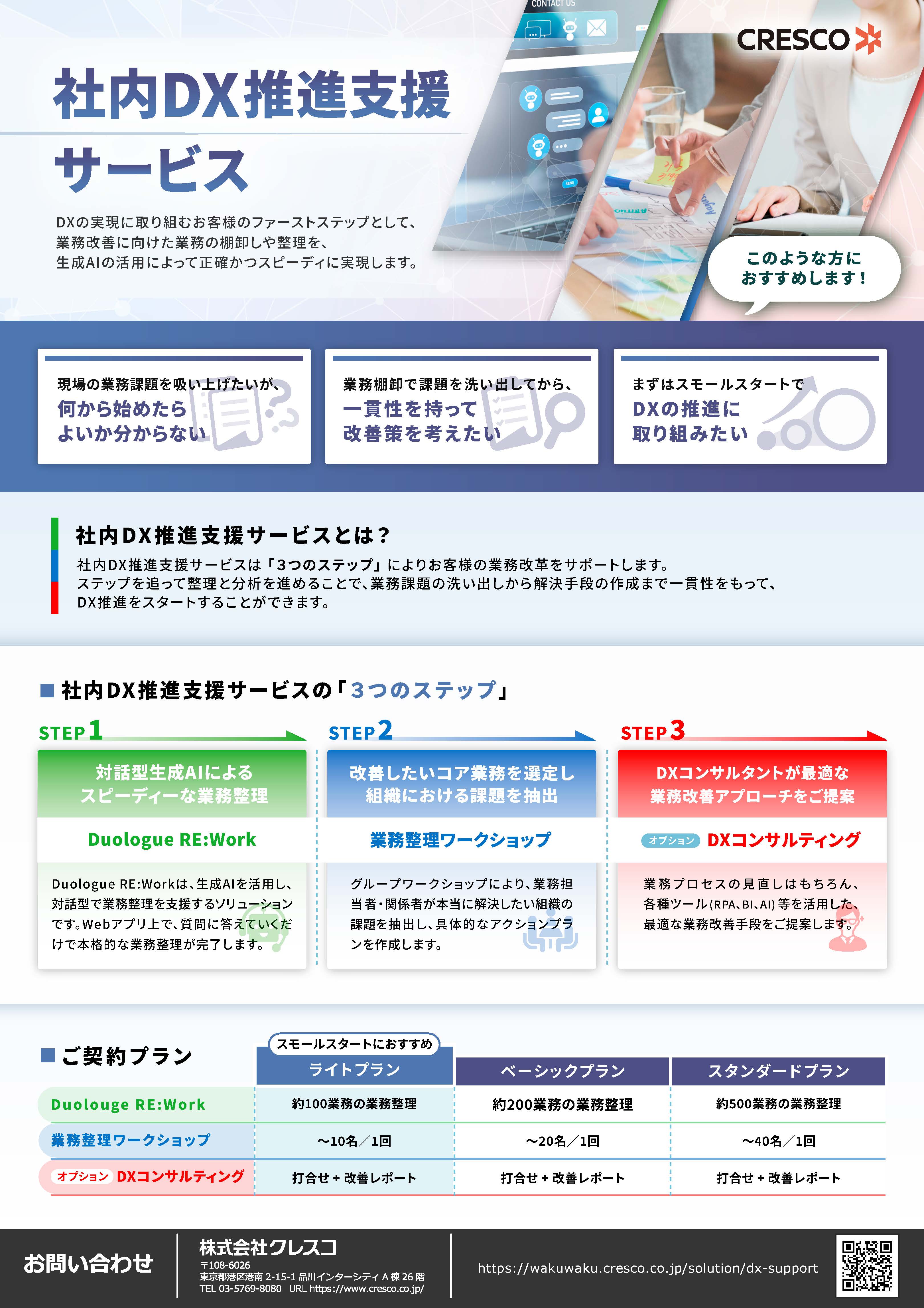 Duolouge RE:Work | 約100業務の業務整理 | 約200業務の業務整理 | 約500業務の業務整理 |